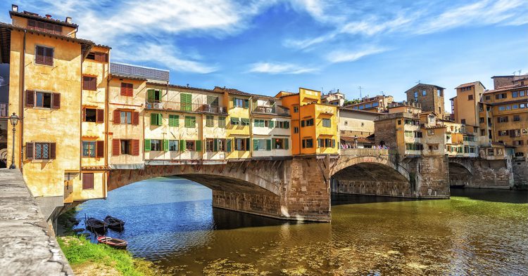 Le célibrissime pont de Florence fait obligatoirement partie de notre classement. En s’appelant le « vieux pont », difficile de passer à côté ! Construit en 1345, il a comme autre particularité de faire également office de petite galerie commerciale avec ses boutiques de joaillerie et d’orfèvrerie.